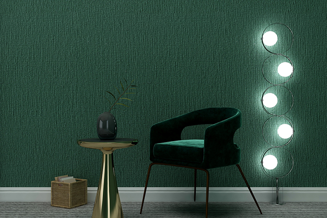 大尺度的针孔型植物图案印花,披着一层温润的珍珠光泽,犹如丝绸上精美的刺绣。墙面性能优异:抗水、耐污,不暗淡、不退色,图案花纹不坍塌。